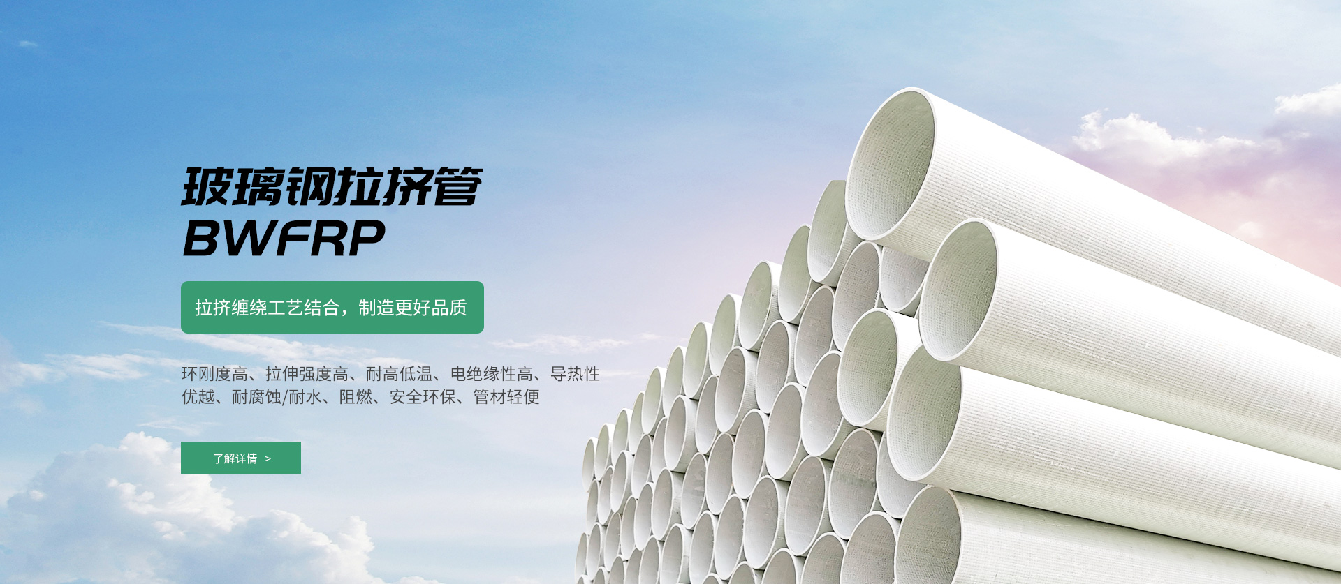纖維編繞拉擠電纜保護管(BWFRP),是一種新型電纜導管材料。采用高性能纖維復合材料和環氧樹脂為原材料,由內編繞層、中間層、外編繞層構成,通過拉擠工藝成型。這種新型的電纜導管產品具有傳統管材無法比擬的優點,是取代傳統玻璃鋼管的一種結構與性能俱佳的產品,適用于電力電纜及通信電纜的保護套管使用。